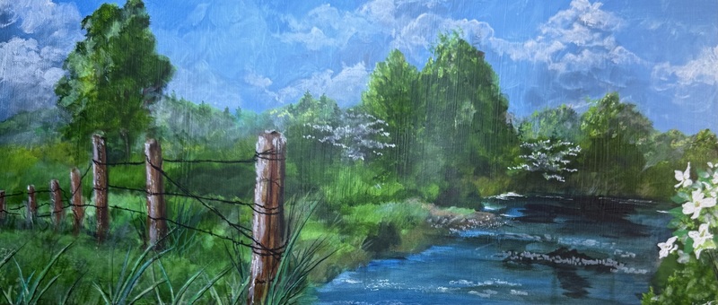 A Sunlit band along Riverside. Acrylic on canvas.