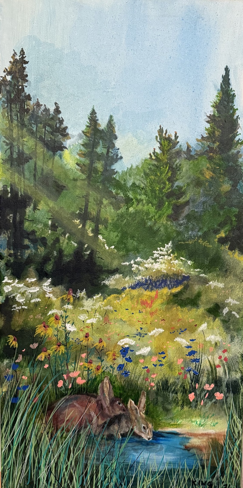 Acrylic on canvas The quiet beauty of nature in a hidden place where wildlife moves softly through a sunlight, woodland meadow.